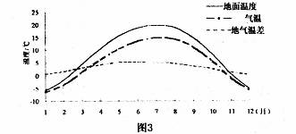 C、地面温度总是低于气温 D、气温越低,地气温差越大