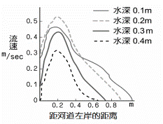 12.下面左图为一曲流的图形,右图为从上游往下游观看河道横剖面的流速分布图。试分析下面右图最可能代表左图中哪一横剖面水流速度的分布