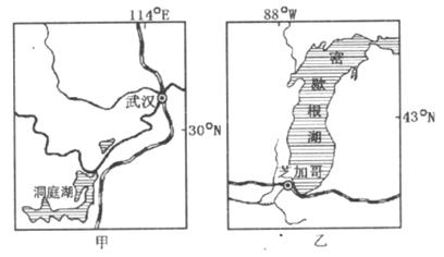 44. (18分)读甲、乙两幅区域图,完成下列问题。