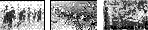 农民在分配土地 人民公社社员在集体劳动 农民领取生产承包合同书