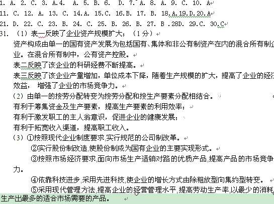 (3)结合三个表,谈谈国有企业怎样才能保持竞争优势?(10分)