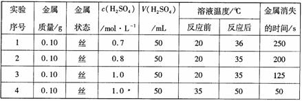 (2)下表是某兴趣小组通过实验获得的稀硫酸与某金属反应的实验数据: