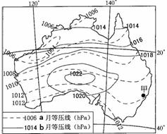 下图示意某大陆多年平均1月、7月海平面气压分布。读图完成5-7题。
