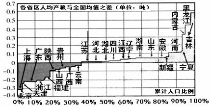 读2006年我国粮食产出、人口份额的地域分布图,回答12-13题。