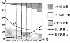 15.抚养比较低,不仅意味着劳动负担较轻,还意味着较高的储蓄率和较强的社会需求,有利于经济社会的持续高速发展。从这个意义上来说,下列年份中,中国人口年龄结构处于黄金时期的是
