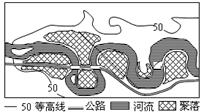 C.河流总体自东向西流 D.该地区聚落沿河流分布于河流凸岸一侧