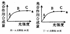 (4)乙图如果在A、C点时温度分别降低10℃,则曲线有何变化?请在丙和丁图中表示出来。