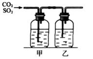 CO2气体中含少量SO2,将此混合气体通过下图所示的装置,可得到干燥纯净的CO2,则甲、乙两瓶中所装的试剂是( )