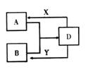 (12分)A、B、D、X、Y是由短周期元素组成的化合物,其中X是常见的强酸、Y是常见的强碱,它们的相互转化关系如右图(部分生成物和水略去)