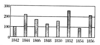 ①鸦片战争后五口通商,导致1844年贸易额一度激增 ② 鸦片走私泛滥,抽走大量资金,导致1845年后贸易额下降 ③中国开放的通商口岸太少,导致1846-1851年间贸易额下降 ④中国自然经济的顽强抵制