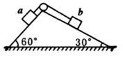 如图所示,一直角斜面体固定在地面上,斜面倾角分别为30°和60°,a、b两物体分别系于一根跨过定滑轮的轻绳两端,置于斜面上.a、b可看成质点,且位于同一水平高度保持静止状态,不计一切摩擦,绳子与斜面平行.若剪断绳子,让a、b由静止下滑,选水平地面为零势能参考平面,则( )
