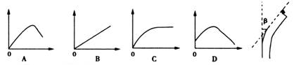 将一组玉米胚芽鞘的顶端切除,分别在其左侧放置含有不同浓度生长素的琼脂块,保持在黑暗中12h,胚芽鞘可能向右弯曲(如下图所示)。则胚芽鞘弯曲的角度β(纵轴)与琼脂块中生长素浓度(横轴)的关系可表示为