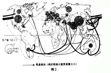 下图示意某农产品的产地、产量及贸易状况。读图4,回答7-9题。