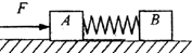 [例4]如图所示,质量相同的木块A、B用轻弹簧连接,置于光滑水平面上,弹簧处于自然长度,现在用水平恒力F推木块A,则在弹簧第一次被压缩至最短的过程中( )