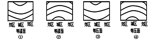 8.下面四幅图中能正确表示该城市热岛效应现象的是 ( )