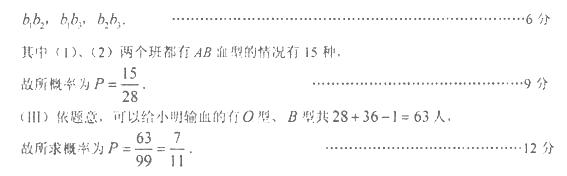 (Ⅲ)已知同种血型的人可以互相输血,O型血可以输给任何一种血型的人,其他不同血型的人不能互相输血。若小明是高三(1)、班的B血型学生,因病需要输血,求在这两个班的学生中任找一个,其血可以输给小明的概率![]()
