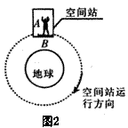 10. 如图2所示,在圆轨道上运行的国际空间站里,一宇航员A静止(相对于空间舱)“站”在舱内朝向地球一侧的“地面”B上。则下列说法中正确的是
