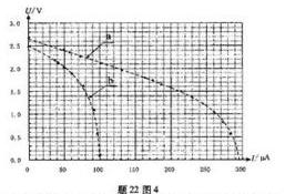 ③实验一:用一定强度的光照射硅光电池,调节滑动变阻器,通过测量得到该电池的U-I曲线a。见题22图4,由此可知电池内阻 (填“是”或“不是”)常数,短路电流为 mA ,电动势为 V。