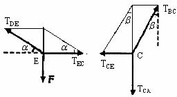 [解析]:根据力的作用效果容易看出,F拉图中E点时,对绳CE、绳DE产生拉力,绳EC进而对绳BC、绳CA产生拉力,绳对E点和C点的受力分析如图所示.由平行四边形定则,对E点、C点分别有