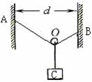 [例5]长为L的轻绳,将其两端分别固定在相距为d的两竖直墙面上的A、B两点,一小滑轮O跨过绳子下端悬挂一质量为m的重物C,平衡时如图所示,求AB绳中的张力.
