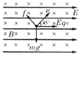 [例9]如图所示,匀强电场方向水平向右,匀强磁场方向垂直于纸面向里,一质量为m、带电荷量为q的粒子以速度v与磁场垂直、与电场成450射入复合场中,恰能做匀速直线运动。求电场强度E的大小、磁感应强度B的大小。