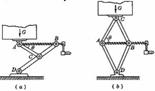 5.如图所示是汽车内常备的两种类型的“千斤顶”。图(a)中是“y”形的,图(b)中是“菱”形的,逆时针摇动手柄,使螺旋杆转动(螺旋杆保持水平),A、B间距离变小,重物G就被顶升起来,反之则可使重物G下降。若物重为G,AB与AC之间的夹角为θ,则“y”形千斤顶螺旋杆AB的拉力大小为 ,“菱”形千斤顶螺旋杆AB的拉力大小为 。(不计顶升机杆件自重).