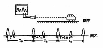 8.如图所示为用超声波测速的装置,该仪器可以向正在平直公路上匀速行驶的汽车发出一束短促的超声波(图甲中振幅较大的波形),并且能收到反射回来的超声波(图甲中振幅较小的波形),将两种波形显示在屏幕上,相邻波形间的时间间隔如图乙所示,超声波的速度为