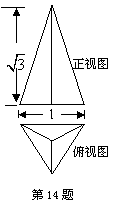 14.若正三棱锥的正视图与俯视图如右图所示(单位cm),则它的侧视图的面积为