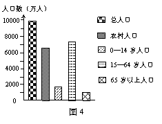 图4表示“我国某省2009年各类人口数量构成图”,图5表示“该省三大产业的比例变化”,据图完成5-6题。