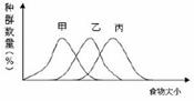 5.下图表示某一生态系统中,取食方式为吞食的三个物种随食物颗粒大小而产生的种群数量