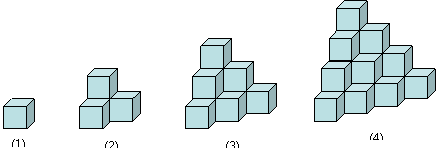 如图是由大小相同的小立方体木块叠入而成的几何体,图⑴中有1个立方体,图⑵中有4个立方体,图⑶中有9个立方体,……