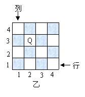 ① 在如图乙的小方格棋盘中有一“皇后Q”,她所在的位置可用“(2,3)”来表示,请说明“皇后Q”所在的位置“(2,3)”的意义,并用这种表示法分别写出棋盘中不能被该“皇后Q”所控制的四个位置.