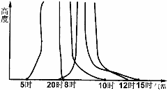 读某地气温随高度和时间变化示意图,据此回答20-22题。![]()