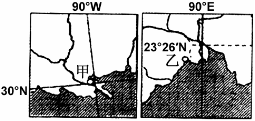 24.据地理坐标判断,甲、乙两地的距离约为![]()
