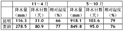 (1)根据资料一,概括昆明、贵阳四季分配的特点。(2分)