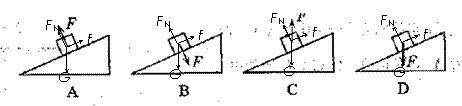1.(09年天津卷)物块静止在固定的斜面上,分别按图示的方向对物块施加大小相等的力F,A中F垂直于斜面向上。B中F垂直于斜面向下,C中F竖直向上,D中F竖直向下,施力后物块仍然静止,则物块所受的静摩擦力增大的是