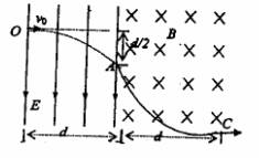 电粒子在电场方向的位移为电场宽度的一半,当粒子从c点穿矗j磁场时速度方向与进人