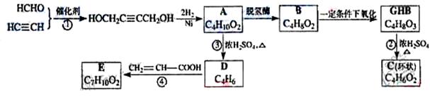 物质A在体内脱氢酶的作用下会氧化为有害物质GHB。下图是关于物质A的一种制备方法及由A引发的一系列化学反应。