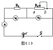 如图(1)所示的电路中,R1为定值电阻,R2为滑动变阻器。闭合电键S后,调节滑动变阻器,将滑动变阻器的滑片从