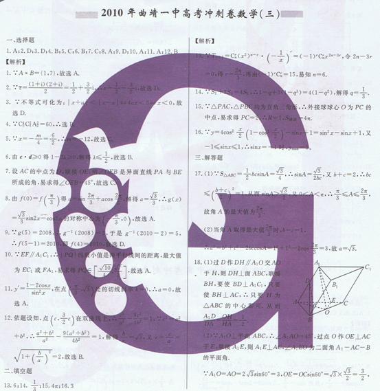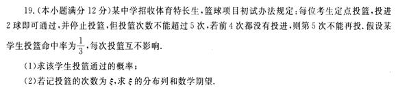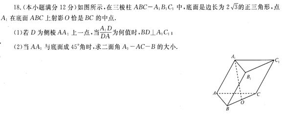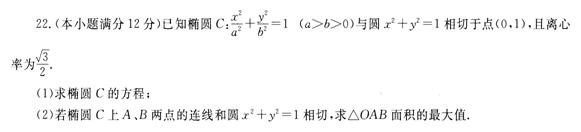 17.(12分)在△ABC中,a、b、c分别为角A、B、C的对边,b+c=2,△ABC的面积为