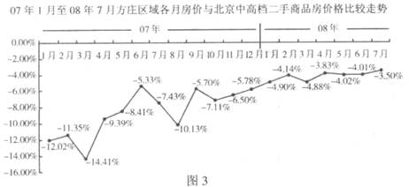 房价问题越来越成为中国老百姓热衷谈论的话题。方庄位于北京市丰台区,目前有芳古园、日月国际、芳兴苑、时代芳群、状元城、芳南家园2期、金偶嘉业、阳光A版等多个住宅小区。读图3,回答3-4题。