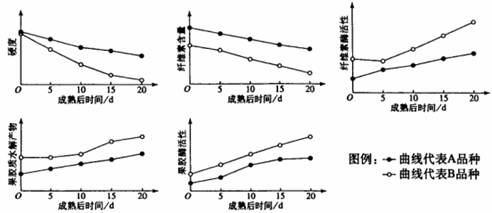 5.下图示常温下A、B两个品种桃果实成熟后硬度等变化试验结果。下列正确的是 ( )