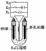 图1左烧杯中铁表面有气泡,右烧杯中铜表面有气泡 |
