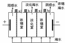 ⑴如下图所示,在电场中利用膜技术(阳离子交换膜只允许阳离子通过,阴离子交换膜只允许阴离子通过)淡化海水,该方法称为电渗析法。