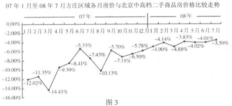 房价问题越来越成为中国老百姓热衷谈论的话题。方庄位于北京市丰台区,目前有芳古园、日月国际、芳兴苑、时代芳群、状元城、芳南家园2期、金偶嘉业、阳光A版等多个住宅小区。读图3,回答3-4题。