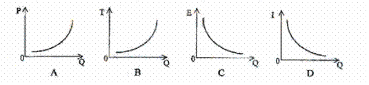 2、汽车需求量(Q)随着汽车价格(P)、汽车购置税(T)、汽油价格(E)、居民收入(I)的变动而变动。下列曲线图中正确反映其变动关系的是