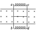 (2010年韶关一模)如图所示,两根足够长的固定平行金属光滑导轨位于同一水平面,导轨上横放着两根相同的导体棒ab、cd与导轨构成矩形回路.导体棒的两端连接着处于压缩状态的两根轻质弹簧,两棒的中间用细线绑住,它们的电阻均为R,回路上其余部分的电阻不计.在导轨平面内两导轨间有一竖直向下的匀强磁场.开始时,导体棒处于静止状态.剪断细线后,导体棒在运动过程中