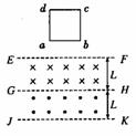 线框ab从开始进入第一个磁场上边界至刚刚到达第二个磁场下边界JK的过程,由能量守恒得: