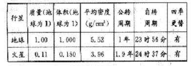 A.重力加速度大小 B.公转周期长短 C.表面温度高低 D.昼夜交替周期长短 ![]()