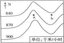 C.b点地势低,自转线速度大 D.b点地势高,自转线速度大![]()